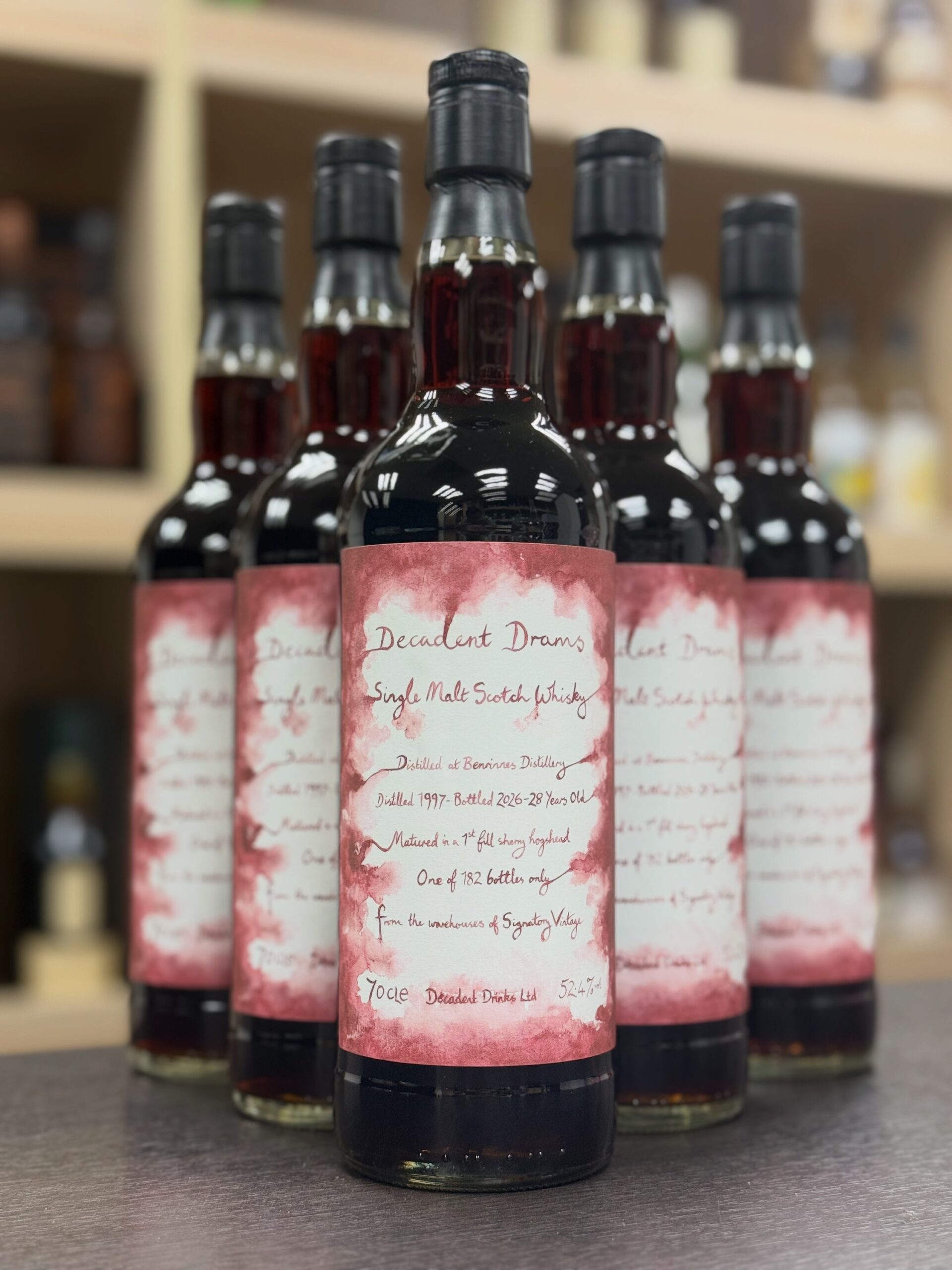 由Decadent Drinks挑選Benrinnes 單桶,於1st Fill Sherry Hogshead 熟成28年,墨汁般的色澤擁有著醬香、黑森林蛋糕、提子乾、紅色水果等等濃烈且「爆」的雪莉桶個性,是一款為典型的Sherry Bomb。