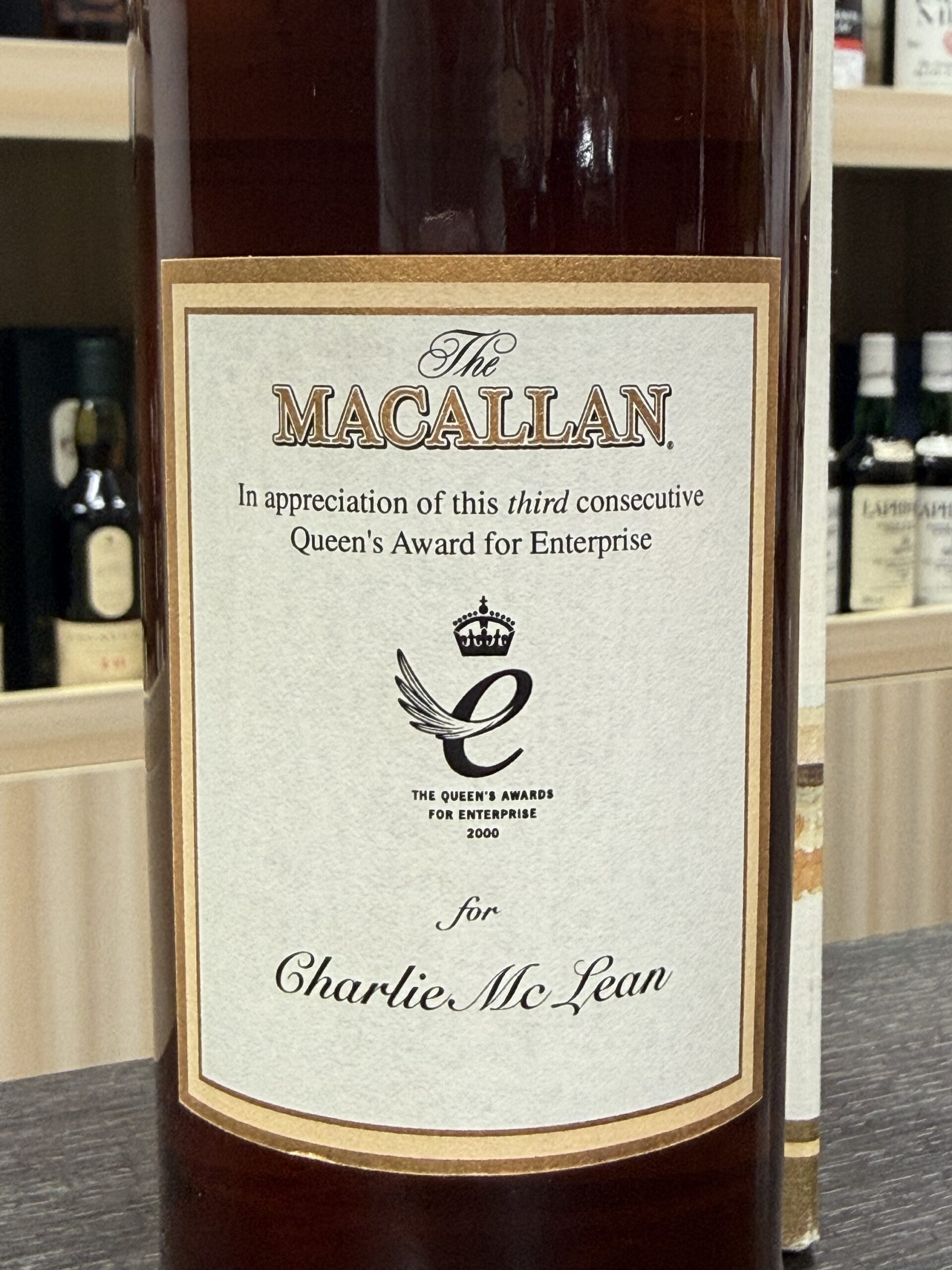 Queen’s Award for Enterprise有效期為5年,在2000年更加是連續三屆獲得此殊榮,不論是威士忌業或是其他行業皆屬難以打破的紀錄。為此,Macallan特意推出此紀念版的12yo以送贈各級員工。見背標,於2000年推出此作品,減去12年,即內裡酒液最遲於1988年蒸鎦,無論如何都是80年代Vintage。
